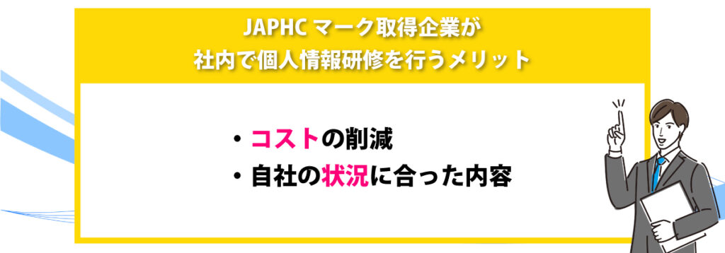 自社の状況に合った内容にできるという点も、JAPHICマーク取得企業が社内で個人情報研修を行うメリットです。