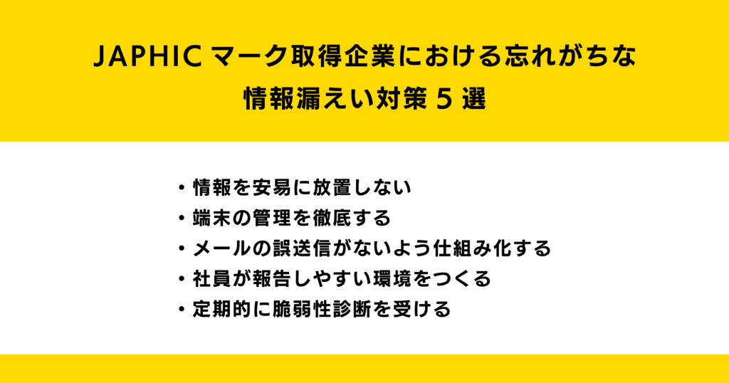 JAPHICマーク取得企業における忘れがちな情報漏えい対策5選
