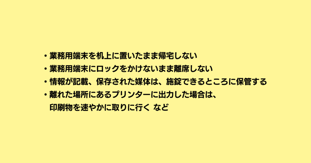 そのため、安易に情報を放置しないために、以下のような対策が必要です。