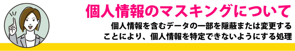 個人情報のマスキングは、個人情報を含むデータの一部を隠蔽または変更することにより、個人情報を特定できないようにする処理です。